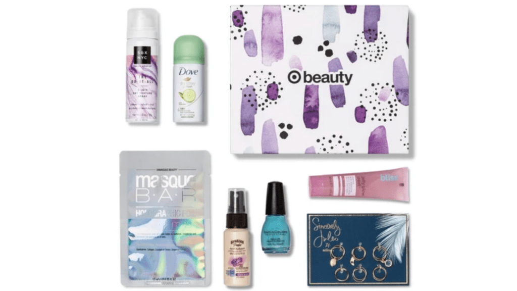 Target beauty box is a monthly box filled with skincare, makeup, and hair care products.